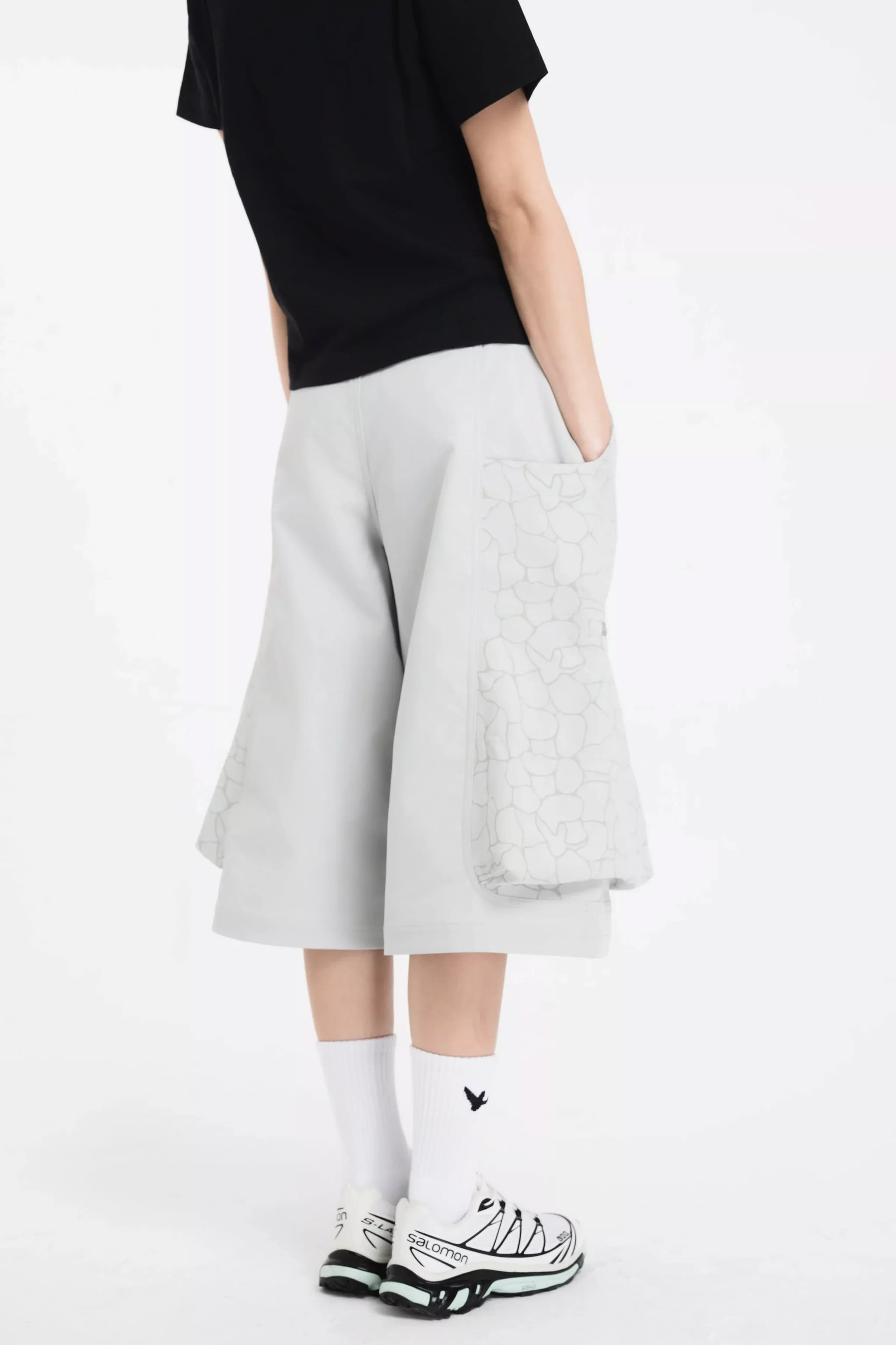 The side pockets are cleverly designed to combine storage function with a puffed effect, enhancing the overall silhouette of the garment